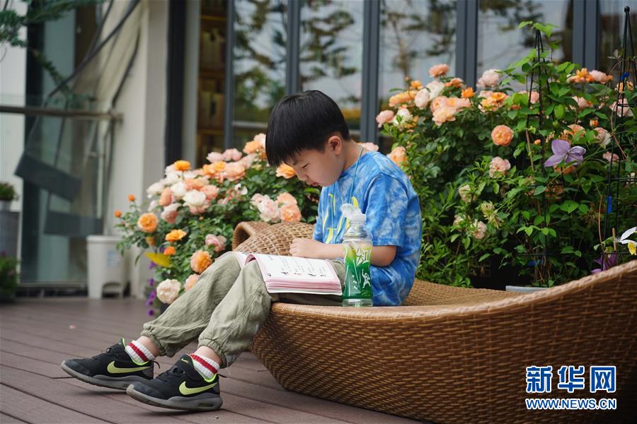 5月1日,一名小读者在江西南昌高新区艾溪湖“美书馆”的屋顶花园阅读。 当日是“五一”小长假第一天,全国各地群众以不同方式放松心情,欢度假日。 新华社记者 周密 摄