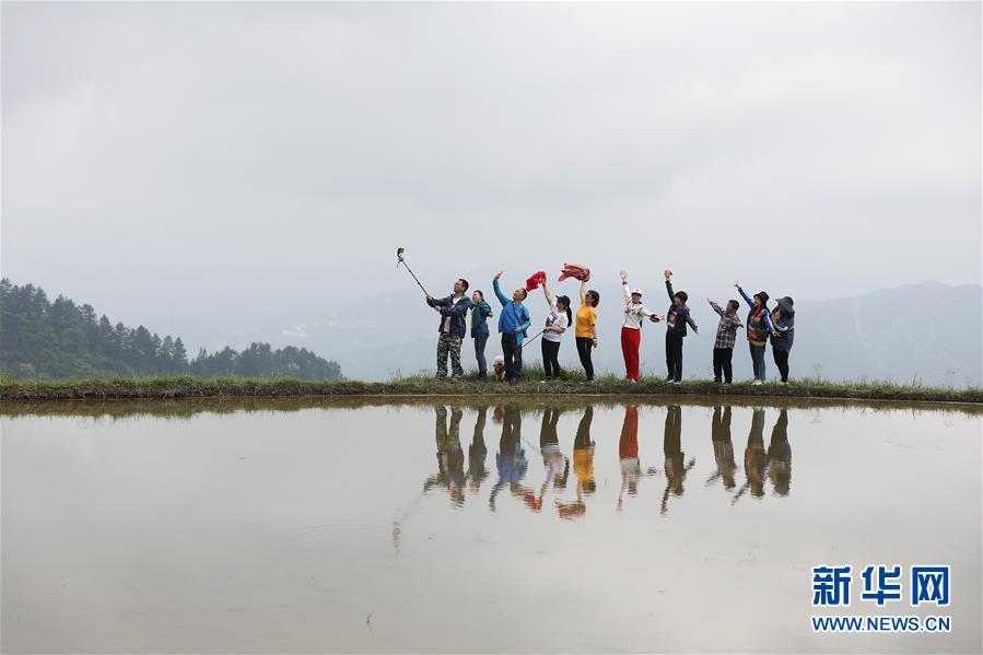 5月2日,游客在贵州省丹寨县排调镇麻鸟村的一处梯田上游玩拍照。 当日,是“五一”假期第二天,人们走出家门,以不同的形式享受假日时光。 新华社发(黄晓海 摄)