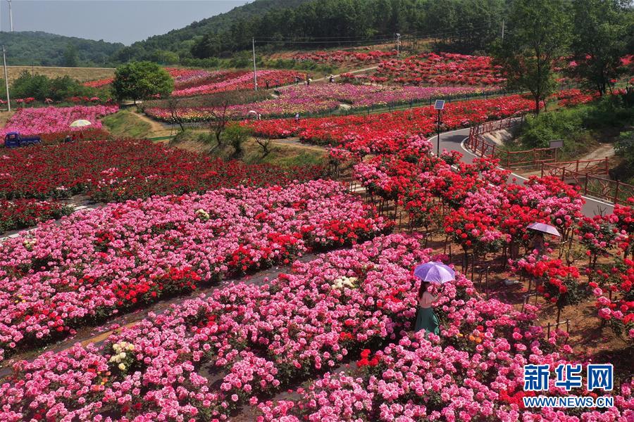 5月2日,游人在湖北省荆门市圣境花谷游玩(无人机照片)。 “五一”假日期间,人们以多种方式放松心情、享受假日。 新华社发(彭琦 摄)