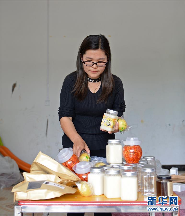 在泸溪县兴隆场镇甘田坪村,杨春竹在家中整理农产品(4月29日摄)。 1983年出生于湖南省湘西土家族苗族自治州泸溪县兴隆场镇甘田坪村的杨春竹曾在上海从事文职工作,2015年回到家乡甘田坪村。性格开朗的杨春竹喜欢在朋友圈分享乡村生活:挖竹笋、剁辣椒、养蜜蜂……有朋友找她购买山货,她在帮助朋友的时候,开始把家乡农产品向外推广,发现了创业的门路。如今,杨春竹的生意越做越大,她收购村民的农产品,带动十户贫困户一起致富。“希望我不断努力成为榜样,带领乡亲越过越好。”杨春竹说。新华社发(陈振海 摄)