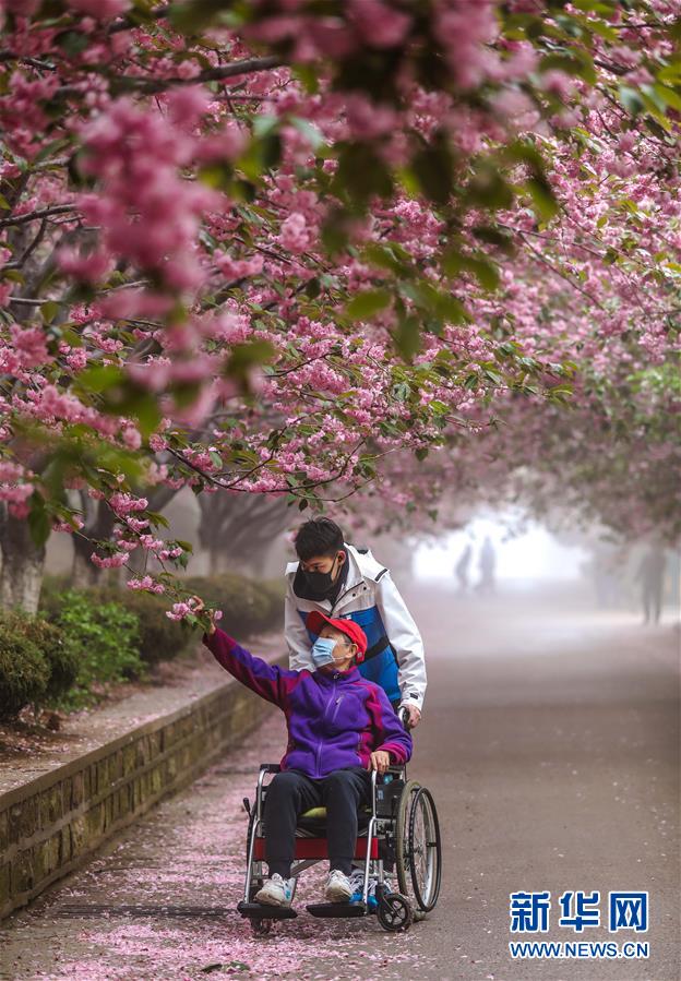 5月3日,游客在山东省荣成市赤山风景区赏花。 “五一”假期,人们走出家门,亲近自然,放松身心,享受假期休闲时光。 新华社发(李信君 摄)