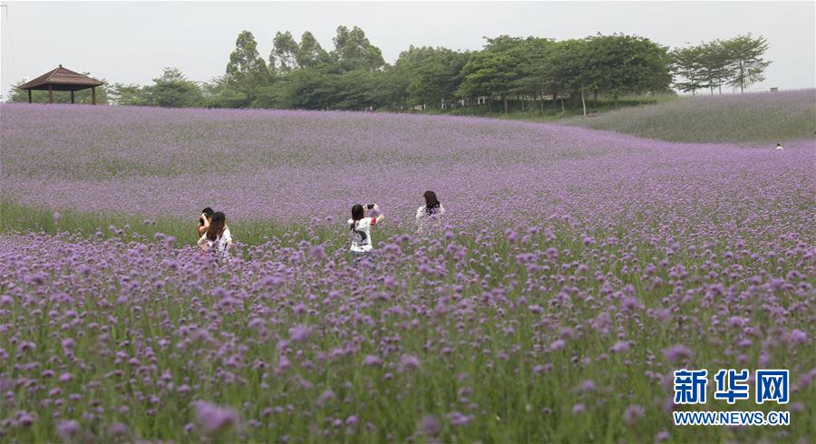 5月2日,游客在广西来宾市忻城县薰衣草庄园景区赏花游玩。 “五一”假期,人们走出家门,亲近自然,放松身心,享受假期休闲时光。 新华社发(樊绍光 摄)