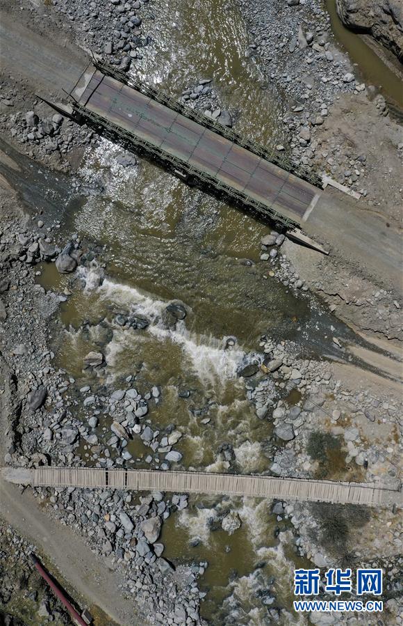 这是在新疆叶城县西合休乡7村附近拍摄的桥梁,图上方是新建的钢构大桥,图下方的简易吊桥曾经是村民出行的主要通道(5月2日摄,无人机照片)。 新疆叶城县西合休乡地处高山地带,平均海拔3500米以上。受限于恶劣的自然环境,当地农牧民曾长期面临着“行路难”的问题。近年来,随着脱贫攻坚的深入实施,新疆加大对偏远山村基础设施建设的投入,西合休乡百姓出行条件得以大幅改善。据介绍,西合休乡下辖的9个行政村目前均已实现通路。 新华社记者 胡虎虎 摄