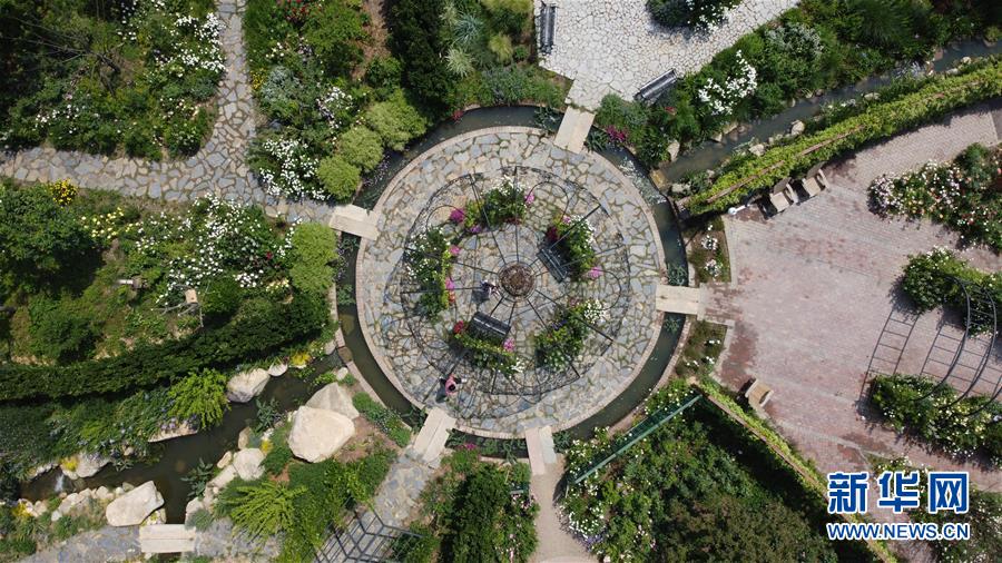 5月4日,游客在安徽省合肥市祥源花世界一处花园里赏花游玩(无人机照片)。 当日是“五一”小长假第四天,各地群众以不同方式放松心情,欢度假日。 新华社记者 张端 摄