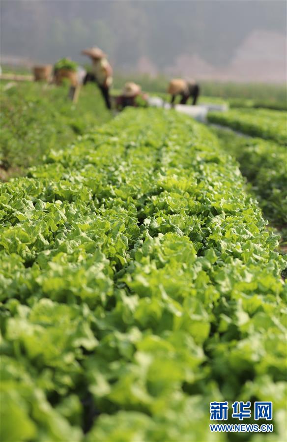 5月4日,在贵州省铜仁市玉屏侗族自治县新店镇洞坪村,村民在采收生菜。 新华社发(胡攀学 摄)