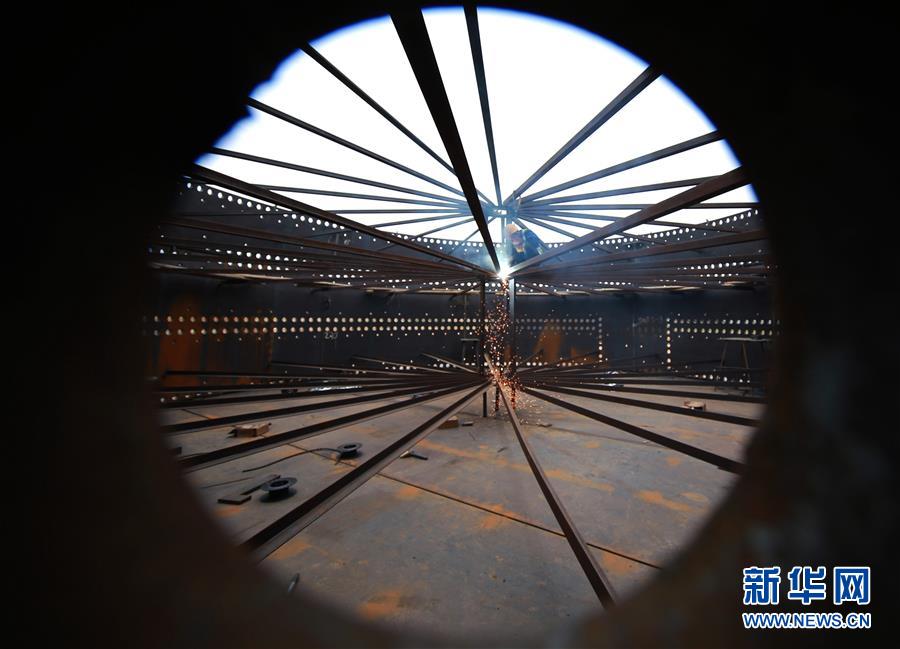 5月4日,在河北省邯郸市峰峰矿区经济开发区产业园一项目建设工地,工人在施工作业。 “五一”小长假进入第四天,各行各业都有依然在工作岗位上忙碌的身影。 新华社记者 王晓 摄