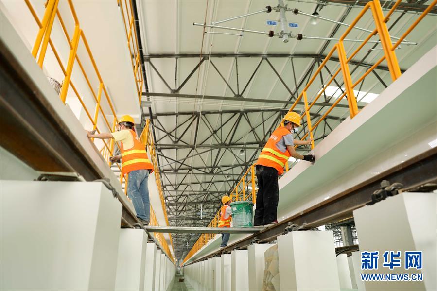 5月4日,中铁电气化局的建设者在合肥地铁五号线珠江路停车场项目工地施工。 “五一”小长假进入第四天,各行各业都有依然在工作岗位上忙碌的身影。 新华社记者 曹力 摄