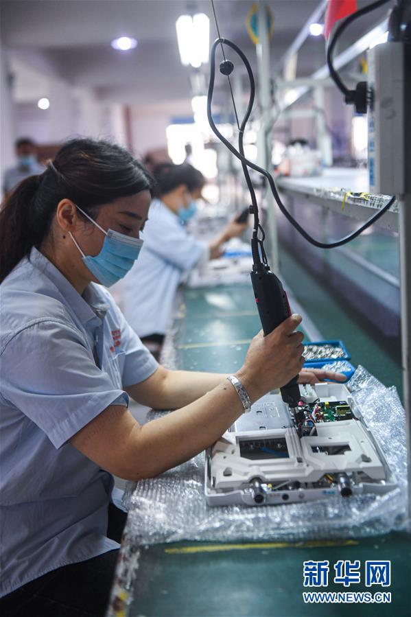 5月6日,在位于长兴县的浙江德恩特电器公司生产线上,工人在组装新款速热电热水器。 近期,浙江省长兴县推出多项鼓励政策,积极引导企业在复工复产的同时加大新产品研发力度,转型升级,拓展线上销售渠道,开拓市场,促进企业生产和销售提升。 新华社记者 徐昱 摄
