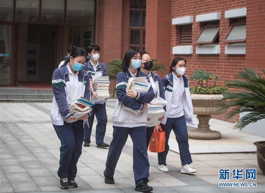 5月6日,武汉市第六中学的高三年级学生进入校园。 当日,武汉首批121所学校高三年级正式复学,学生返校上课。据了解,开学前,所有校园均开展了卫生清洁和预防性消杀工作,所有学生返校前须进行健康检测。 新华社记者 肖艺九 摄