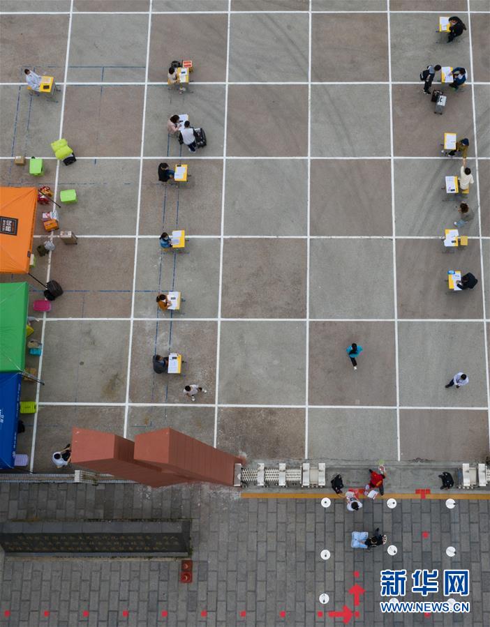 5月6日,湖北省宜昌市秭归县第一中学的学生有序入校(无人机照片)。 当日,湖北省普通高中毕业年级(含中职学校和技工学校的毕业年级)学生统一开学。 新华社发(雷勇 摄)