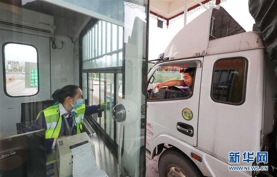 5月6日,贵州省铜仁市玉屏侗族自治县沪昆高速玉屏收费站的收费员在收取过往车辆过路费。 交通运输部4月28日发布关于恢复收费公路收费的公告,经国务院同意,自2020年5月6日零时起,经依法批准的收费公路恢复收费(含收费桥梁和隧道)。 新华社发(胡攀学 摄)