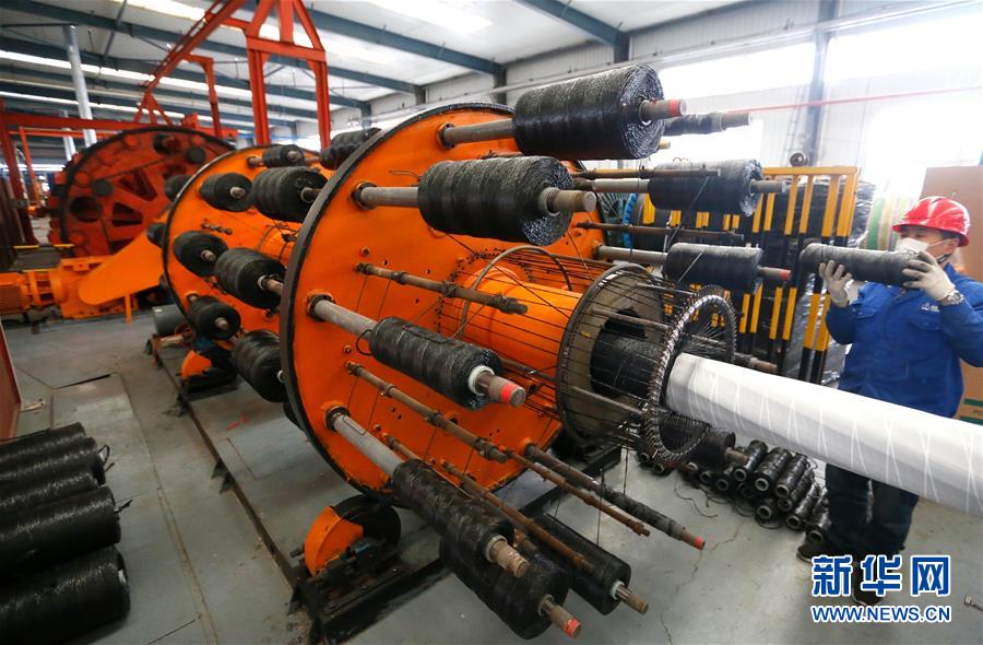 5月6日,在位于山东青岛市即墨田横岛省级旅游度假区的青岛汉缆股份有限公司海缆生产基地,工人进行无纺布绕包作业。 “五一”假期过后,各地多家工业企业恢复正常生产状态,开足马力加紧订单生产,满足市场需求。 新华社发(梁孝鹏 摄)