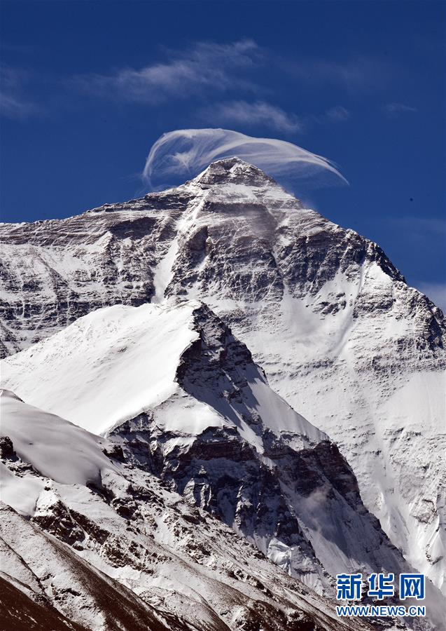 从绒布寺远眺珠穆朗玛峰(5月4日摄)。 珠穆朗玛峰国家级自然保护区是以保护高山生态系统及其相邻的高原自然景观、丰富独特的生物多样性、具有重大科学价值的地史遗迹以及藏族历史文化遗产为主的综合性自然保护区。保护区内生物资源丰富,景色壮美。 新华社记者 黄豁 摄