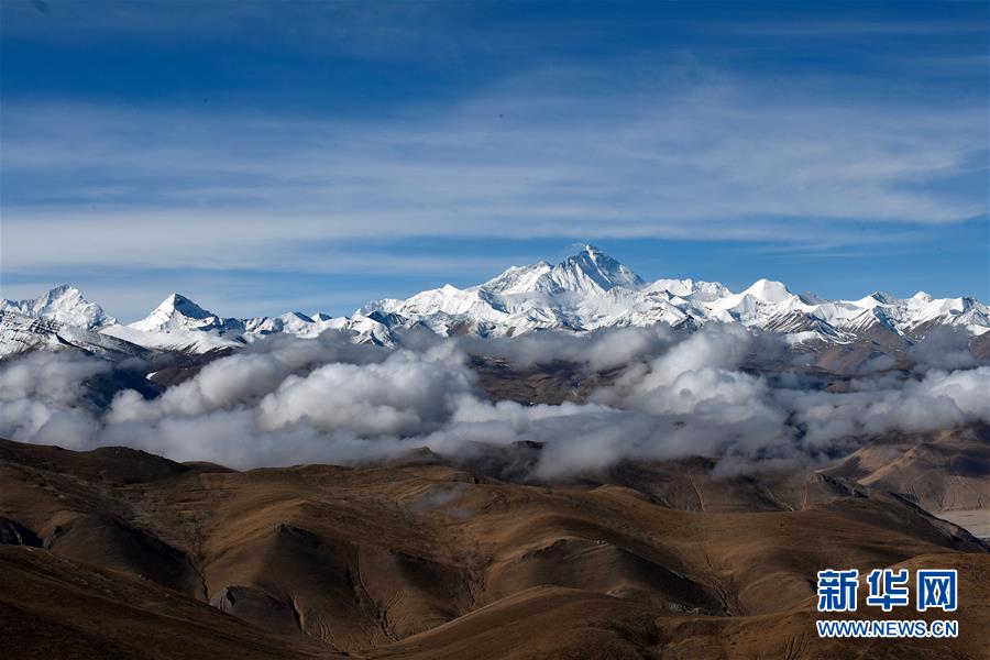 从加吾拉山口眺望珠穆朗玛峰(5月4日摄)。 珠穆朗玛峰国家级自然保护区是以保护高山生态系统及其相邻的高原自然景观、丰富独特的生物多样性、具有重大科学价值的地史遗迹以及藏族历史文化遗产为主的综合性自然保护区。保护区内生物资源丰富,景色壮美。 新华社记者 张京品 摄