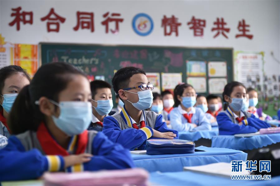 5月6日,河南省洛阳市涧西区英语学校四年级学生在教室里上开学第一课。 新华社发(黄政伟 摄)