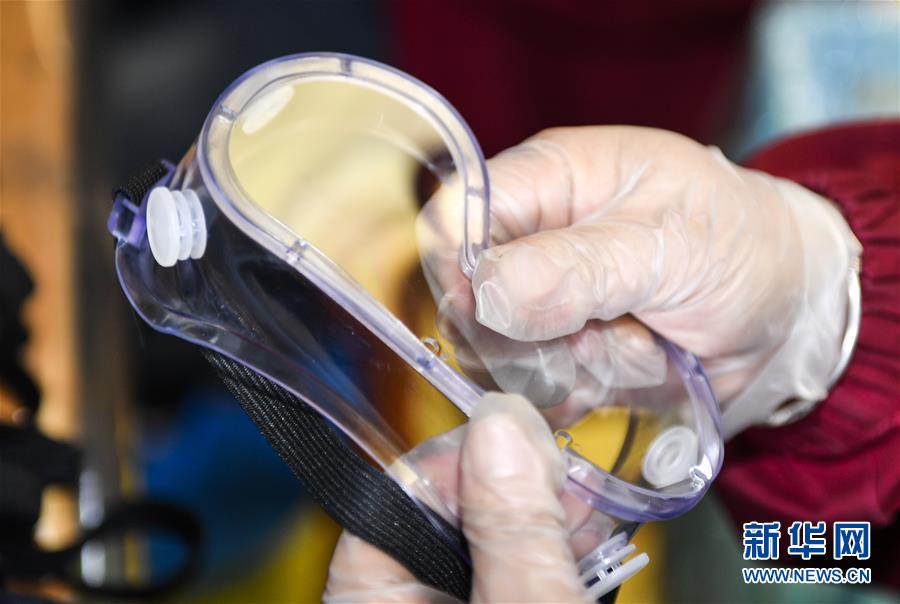 工人在和龙市双昊高新技术有限公司生产车间内组装医用隔离眼罩(5月6日摄)。 自新冠肺炎疫情发生以来,吉林省延边朝鲜族自治州和龙市的防疫物资生产企业开足马力,赶制国内外订单,助力疫情防控。 新华社记者 许畅 摄