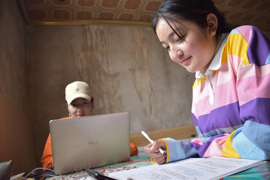 在新疆乌恰县阿依尕特村,姐姐吉帕尔·沙特瓦里地(左)和妹妹其尔哈丽·沙特瓦里地在家里上网课(4月14日摄)。 在崇山峻岭环绕下的帕米尔高原,有这样一对“姐妹花”:通过十几年勤学苦读,她们从高原牧场走进大学校园,由放羊娃变成大学生,为自己的逐梦人生勾勒出一幅美丽画卷。 新华社记者 高晗 摄
