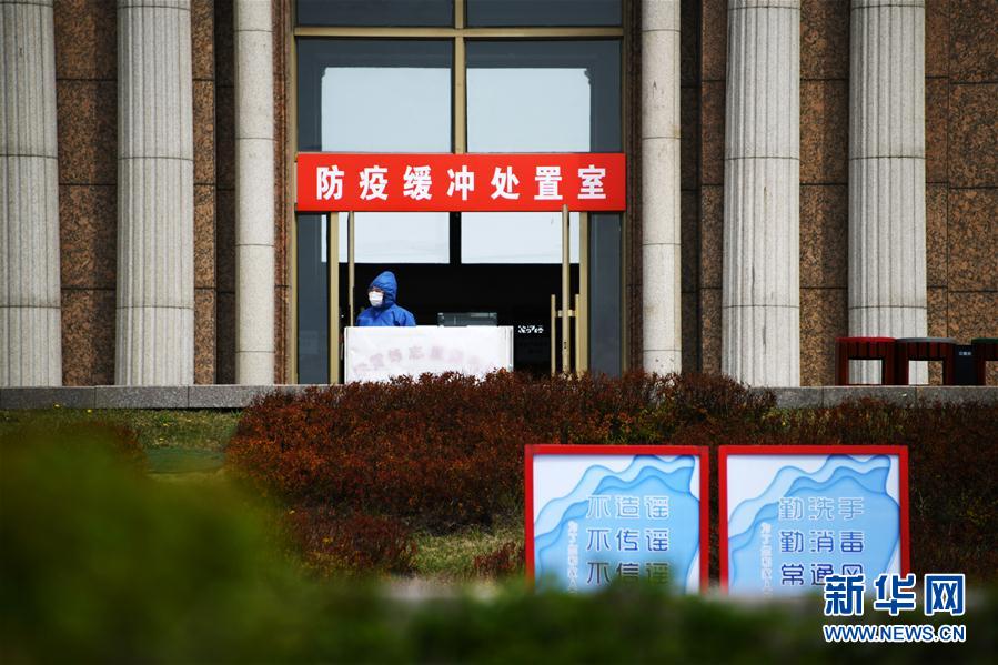 5月7日,在哈尔滨音乐公园附近,一名防疫工作人员在值班。 新华社记者王建威摄