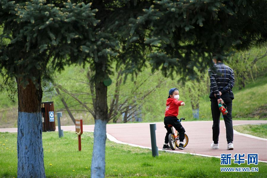 5月7日,市民在哈尔滨湘江公园散步。 新华社记者王建威摄