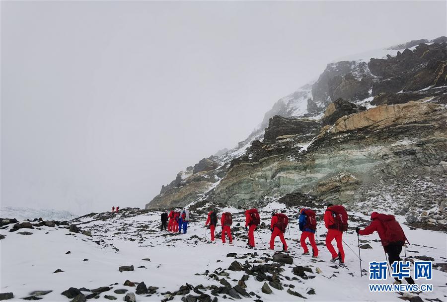 5月7日,2020珠峰高程测量登山队前往海拔6500米的前进营地。 新华社特约记者 拉巴 摄