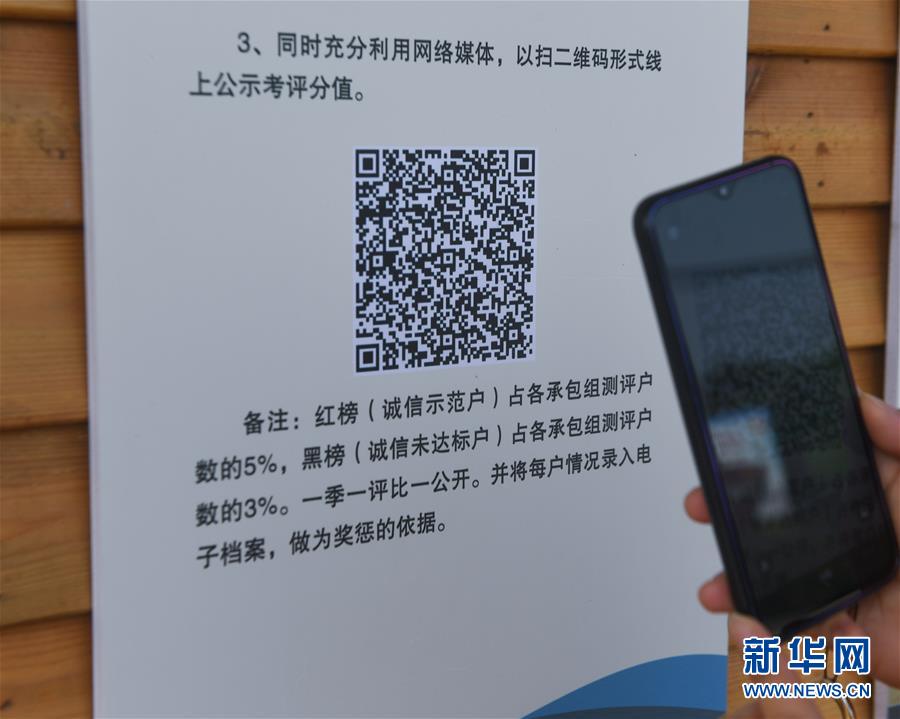 5月8日,浙江省长兴县画溪街道三新村的志愿者在用手机扫描“诚信二维码”,查看诚信红黑榜的公示名单。新华社记者 徐昱 摄