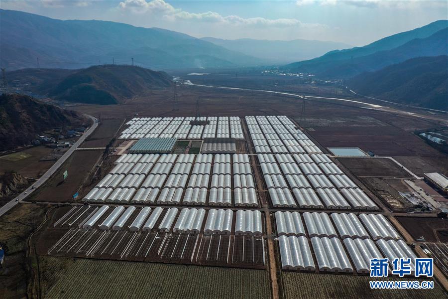 这是位于昭觉县四开乡好谷村的涪昭现代农业示范园区(2019年12月10日摄,无人机照片)。新华社记者 王曦 摄
