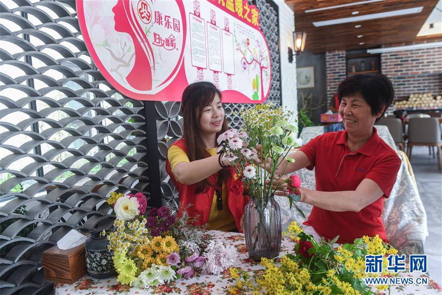5月8日,在长兴县小浦镇潘礼南村的“妇女微家”中,青年志愿者(左)教村里的妈妈们插花,感受生活的美好。 母亲节即将到来,浙江省长兴县小浦镇多个村级“妇女微家”举办母亲节主题活动,志愿者们通过教妈妈们跳舞、插花,为妈妈们做蛋糕、送鲜花等活动,倡导感恩之情。 新华社记者 徐昱 摄