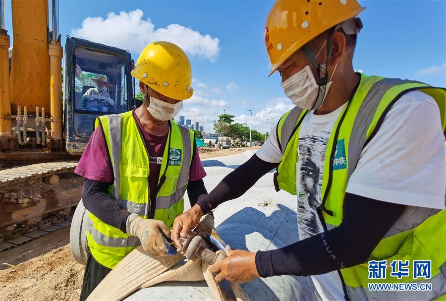 5月8日,中铁上海工程局建设人员在深圳前海进行道路雨水管施工。 近日,深圳前海在做好疫情防控的前提下加紧推进市政工程项目复工复产。 新华社记者 刘大伟 摄