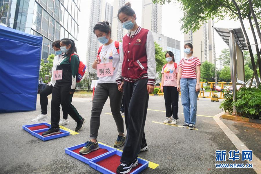 5月8日,在长沙市岳麓幼儿教育集团第二幼儿园,参加模拟演练的老师模拟学生入园前进行鞋底消毒。 近日,长沙市各幼儿园为开园做准备,提前清洁消毒和布置教室,部分幼儿园进行开园的模拟演练。长沙市的幼儿园开园起始时间为5月11日,全市幼儿园在5月15日前完成开园。 新华社记者陈泽国摄
