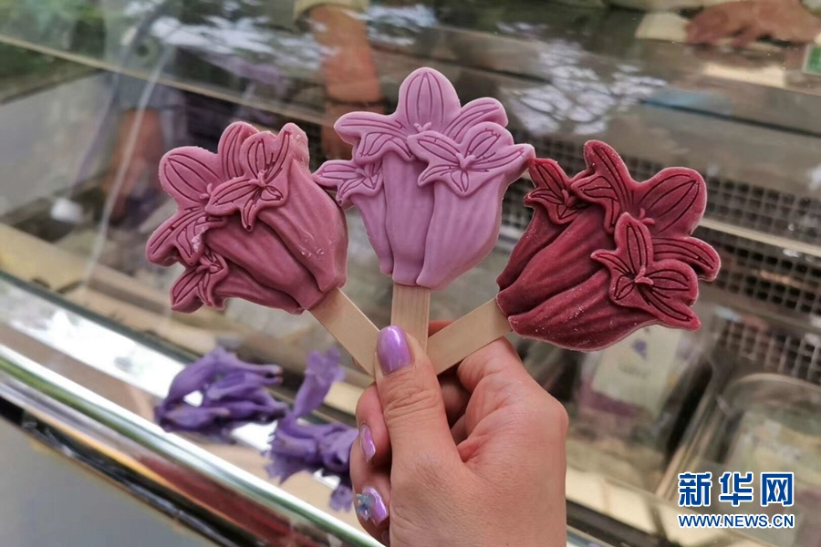 蓝花楹主题雪糕(4月29日摄)。(新华网 张翼鹏 摄)