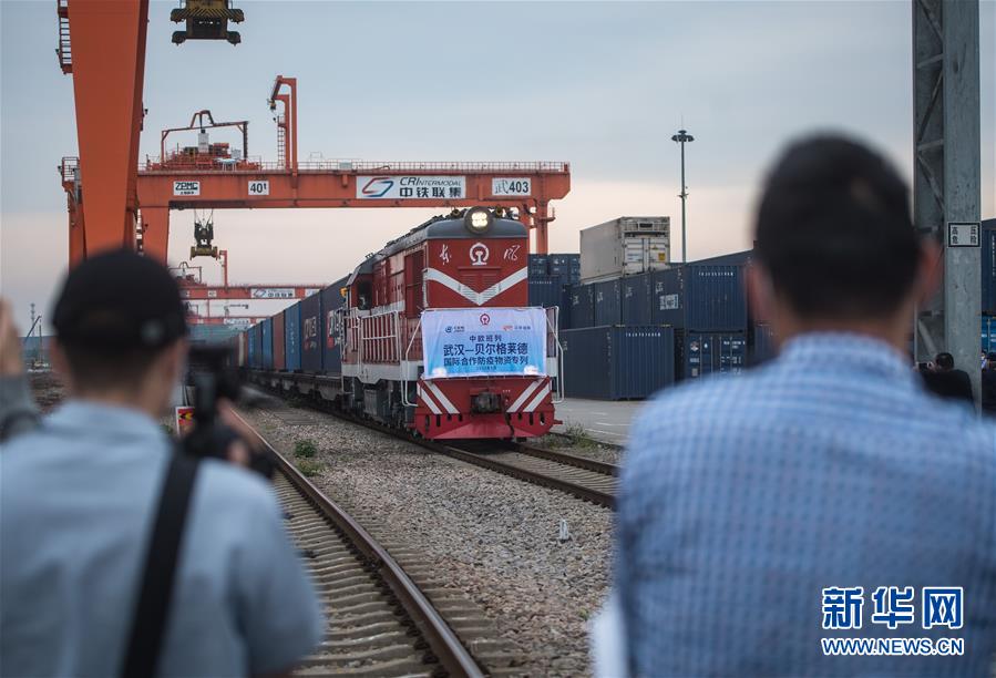 5月9日,开往塞尔维亚贝尔格莱德的中欧班列(武汉)从吴家山站驶出。 新华社记者 肖艺九 摄