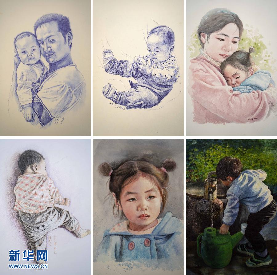 从女儿出生之日至今,每隔一段时间,张海晶就会为女儿画上一幅画,记录下她成长过程中的点点滴滴。 张海晶学画画是“半路出家”的。今年30岁的张海晶从小在浙江丽水长大,2008年,她在阳台收衣服时不幸从六楼跌落,虽然生命得以挽救,她却从此失去了行走的能力,只能与轮椅为伴。 突如其来的打击让张海晶情绪低沉了一年多。2009年,一次偶然的机会,张海晶接触到绘画并为之着迷。她每天都坐着轮椅去学画画,也认识了许多志同道合的朋友。在他们的鼓励下,张海晶逐渐从痛苦中走了出来。 “那时候我真的迷上了画画,有些无法用言语述说的伤痛,却可以在安静的绘画过程中得以平复。”张海晶说。 2014年,张海晶在浙江绍兴认识了但誉超。但誉超也是一名残疾人,从小没有了右手。或许是有着相似的经历,两人有着很多共同语言,很快便坠入爱河。次年,张海晶跟随但誉超回到了位于江西省都昌县大港镇的老家,成为一名“外来媳妇”。 由于夫妇二人身体残疾加上家中老人身体孱弱,2016年,夫妇二人被当地识别为建档立卡贫困户。为了改善生活,张海晶利用绘画特长,出售自己的作品以增加家庭收入。在当地政府的帮扶下,张海晶在镇上创办了美术工作室,在指导当地的留守儿童学习绘画的同时,创作绘画作品在网上销售。丈夫但誉超在政府帮扶下也有了自己的工作。2018年,张海晶一家脱贫摘帽。 “我希望利用我的专长,普及农村美术教育,让更多的农村孩子学到一些绘画知识,为他们打开一扇绘画世界的大门,让他们的生活多一种可能。”张海晶说。 新华社记者 张浩波 摄