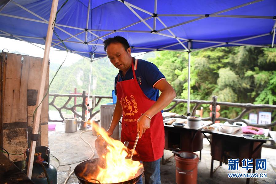 施六金在自家开的农家乐为客人准备午餐(4月25日摄)。1973年出生于十八洞村的施六金,由于父亲患病很早就放弃学业和母亲扛起了家庭的重担。为了生活,他还曾远去东南亚打工。2015年,看到家乡的变化,施六金回到村里开起了农家乐,年度家庭人均纯收入也从2014年的1715元增长到了2019年的35696元。2018年,施六金与心爱的人组建了家庭。今年初,施六金与爱人迎来了一个大胖小子。“做人做事要懂得回报和感恩。”施六金给刚出生的儿子取名施泽恩。新华社记者 薛宇舸 摄