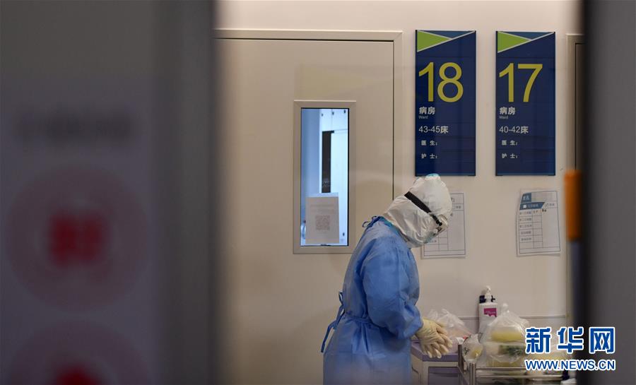 5月11日,在空港医院隔离病房,身处“红区”的护士准备给处在医学观察的人员送饭。新华社记者 李然 摄