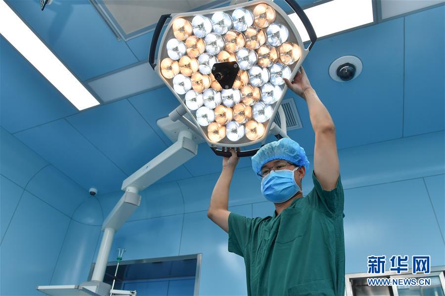 5月11日,罗明川在手术室内调节无影灯。 新华社记者 魏婧宇 摄