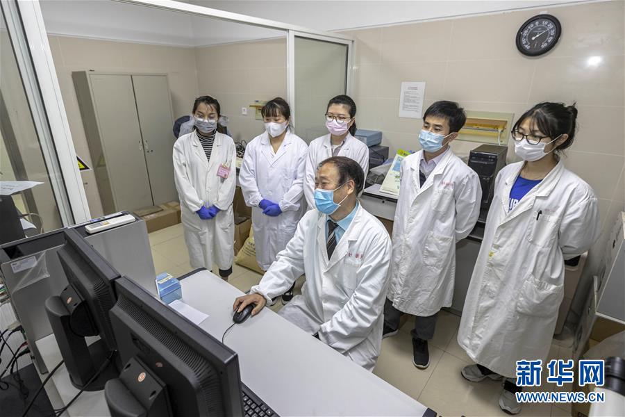 5月7日,在上海市针灸经络研究所实验室内,全国政协委员吴焕淦(前)在电脑前指导学生。 新华社发(王翔 摄)