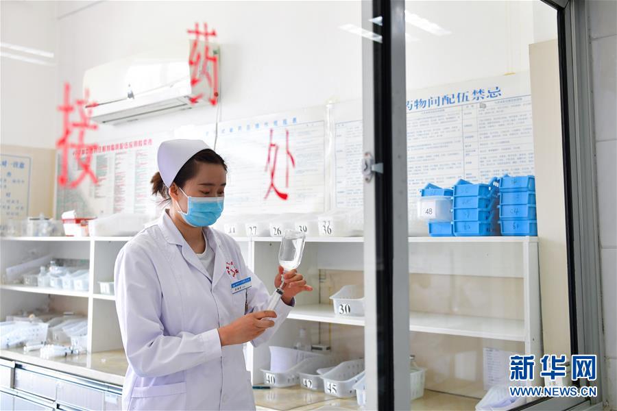 5月10日,刘海婷在海东市第一人民医院给患者配药。 新华社记者 张龙 摄