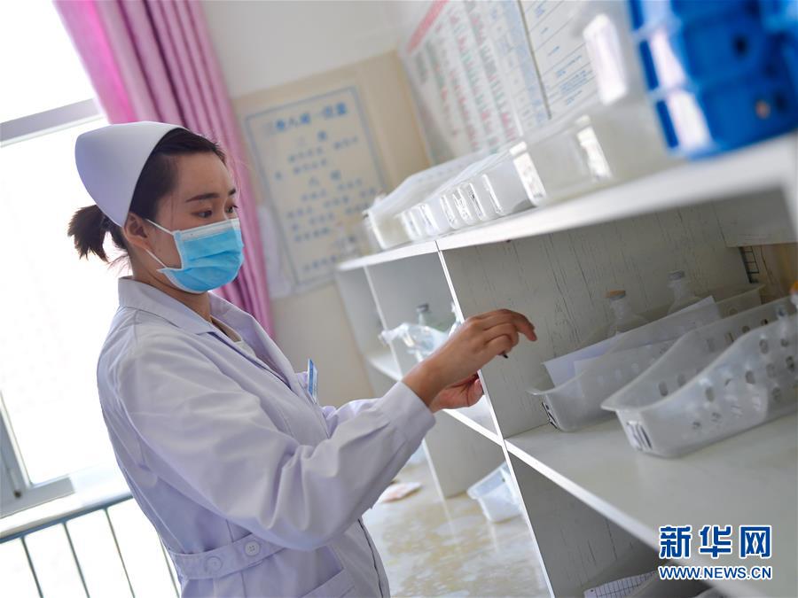 5月10日,刘海婷在海东市第一人民医院给患者配药。 新华社记者 张龙 摄