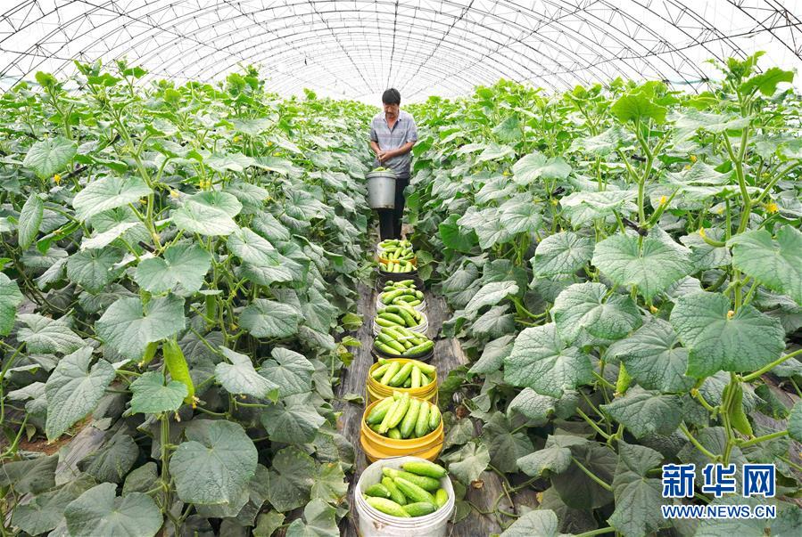5月12日,滦州市小马庄镇郎红棚菜专业合作社的社员在大棚内采摘黄瓜。 近年来,河北省滦州市通过实施“兴菜富农”战略,引导、扶持发展设施蔬菜种植,让越来越多的农民依靠“菜篮子”鼓起“钱袋子”。据介绍,目前该市蔬菜种植面积达到10万余亩。 新华社记者 杨世尧 摄
