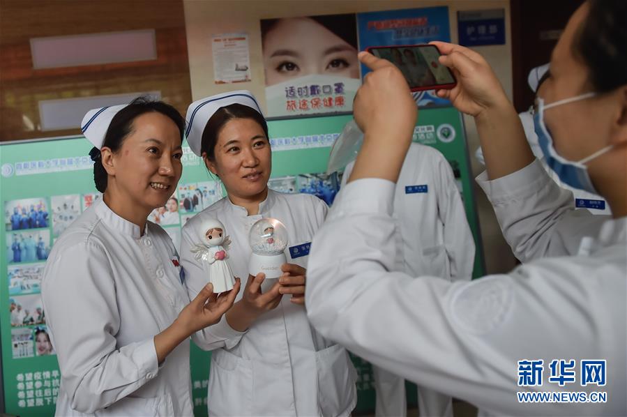 5月11日,在北京地坛医院组织的护士节活动上,护士们在拍照留念。 北京地坛医院是北京市收治新冠肺炎患者的定点医院之一,医院的医护人员一直奋战在抗击疫情的一线。在国际护士节前夕,记者前往北京地坛医院,记录下抗疫一线护士的日常工作状态。 新华社记者 彭子洋 摄