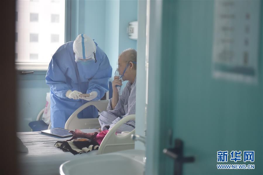 5月11日,在北京地坛医院感染二科病房内,护士高齐教一名老年病人使用手机。 北京地坛医院是北京市收治新冠肺炎患者的定点医院之一,医院的医护人员一直奋战在抗击疫情的一线。在国际护士节前夕,记者前往北京地坛医院,记录下抗疫一线护士的日常工作状态。 新华社记者 彭子洋 摄