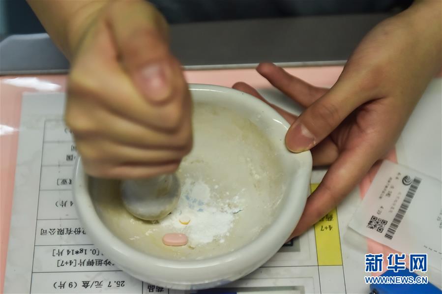 5月11日,在北京地坛医院感染二科护士站,一名护士为不方便服药的病人研磨药片。 北京地坛医院是北京市收治新冠肺炎患者的定点医院之一,医院的医护人员一直奋战在抗击疫情的一线。在国际护士节前夕,记者前往北京地坛医院,记录下抗疫一线护士的日常工作状态。 新华社记者 彭子洋 摄