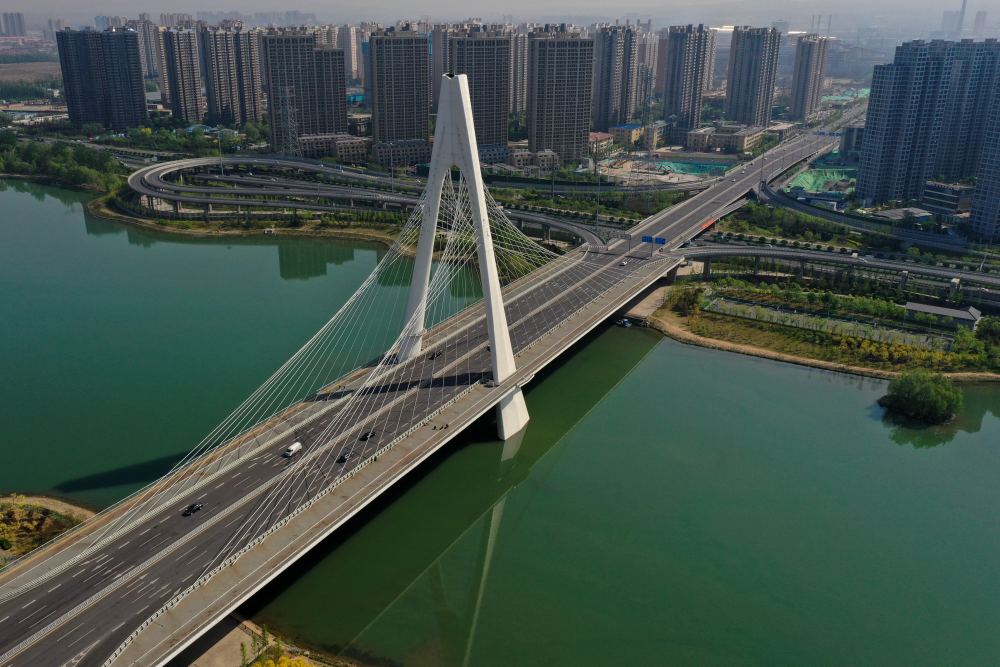 ↑这是2020年4月30日拍摄的太原市汾河两岸景色。新华社记者 曹阳 摄