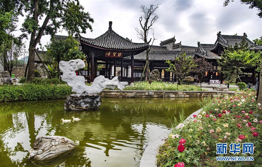 5月13日拍摄的诸葛街水街一景。 近日,陕西省汉中市勉县武侯镇的诸葛街对外开放运营。诸葛街景区由汉式园林建筑及楼台水榭、亭廊阶石、木质亲水栈道等20多处景观组成,集旅游休闲、特色民宿、地方美食等为一体,服务游客的同时为760多人提供了就业。 新华社记者 陶明 摄