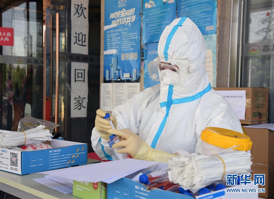 5月13日,在北京市海淀区“自驾不下车”核酸检测点,工作人员整理采集好的咽拭子样本。 当日,记者来到位于北京市海淀区的“自驾不下车”核酸检测点探访检测流程。 据介绍,市民可通过网上预约,前往该检测点进行核酸检测。在检测点现场,工作人员会对市民进行信息核对、测量体温并采集咽拭子。据了解,整个检测过程不超过5分钟,24小时内第三方检测平台出具电子版检测报告,参与核酸检测的市民可在线查阅、下载检测结果。 新华社记者 任超 摄