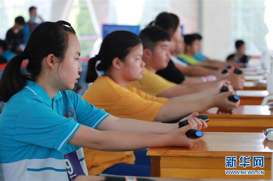 5月13日,考生在台阶项目考试后测量心率。 2020年贵阳市初中毕业生升学体育考试已于5月12日正式开始,全市共有4万5千多名学生参加,考试项目包括长跑、立定跳远、足球等。 新华社记者刘续摄