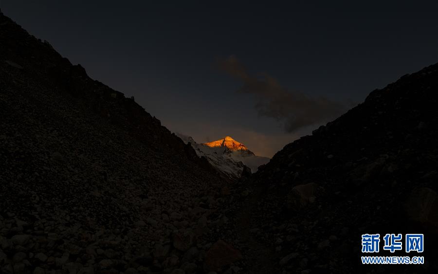 20时52分,落日余晖洒在珠峰峰顶(5月11日摄)。新华社记者 普布扎西 摄