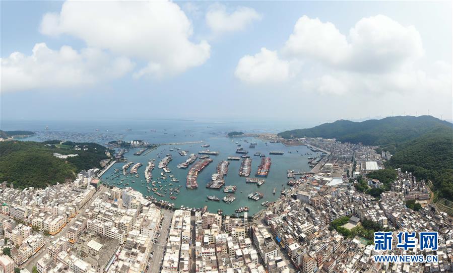 这是5月13日拍摄的海陵岛闸坡国家中心渔港(无人机照片)。 海陵岛位于广东省阳江市西南部,天蓝海碧、山青沙洁,海洋渔业资源丰富。 新华社记者 邓华 摄