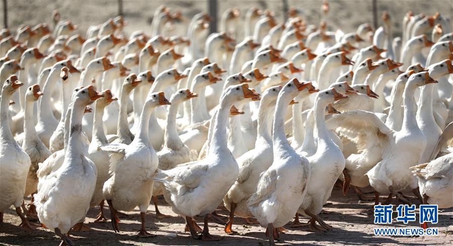 这是5月13日拍摄的辽宁省台安县新台镇云柳村一家养殖户农场里的白鹅。 近年来,辽宁省台安县大力发展特色养殖业,通过“合作社+养殖户”的模式,着力推进白鹅规模化养殖,打造绿色生态养殖产业,促进当地农民增收致富。 新华社记者 姚剑锋 摄