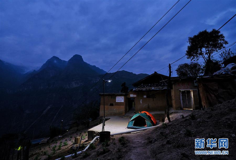 5月12日清晨,莫色达体家门口小院坝上的帐篷里住着游客。新华社记者 江宏景 摄